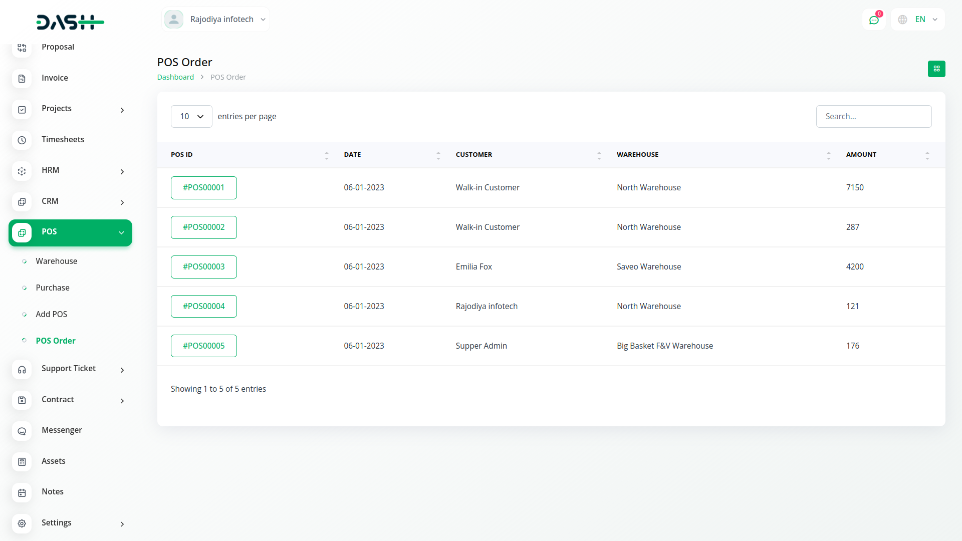 POS allows you to keep a tab on the total as well as the monthly amounts of sales and purchases. The interactive purchase sales report graph allows you to make informed decisions. You would receive notifications on the dashboard if products reach the minimum quantity.